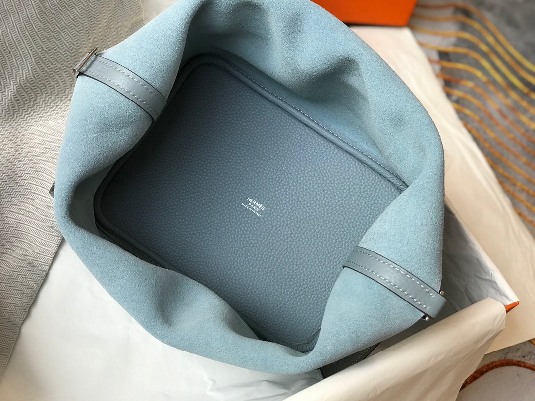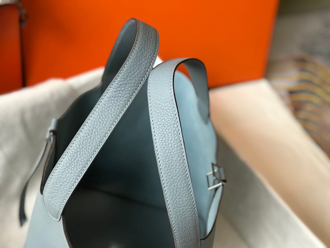 - Color: stone blue color, silver hardware