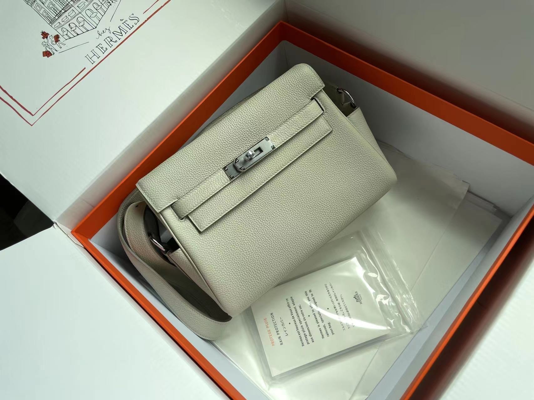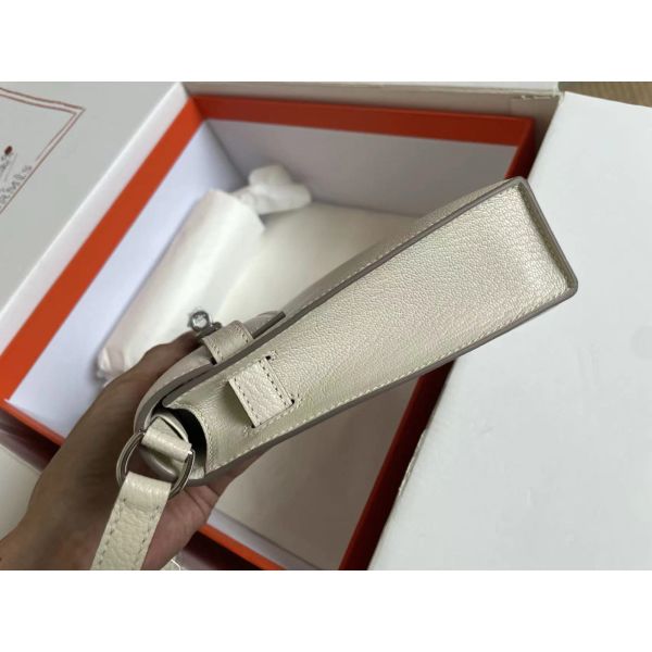HERM Kelly 20cm Bag In Craie Clemence Leather GHW