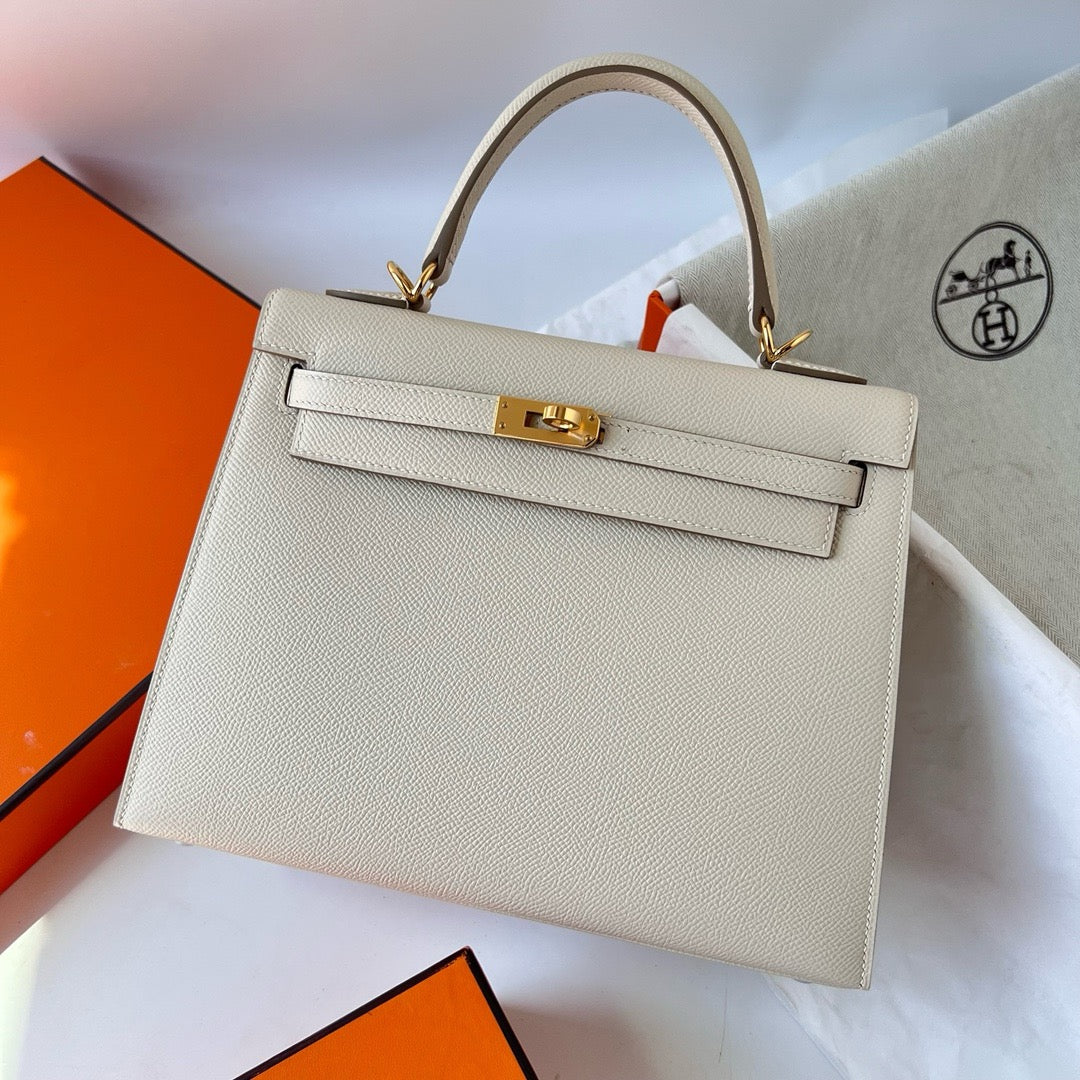 HERM Kelly 25 Cream Togo Leather Gold Hardware