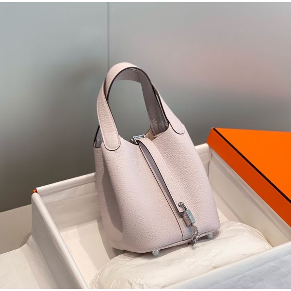 HERM Picotin Lock 18 Bag In Mauve Pale Clemence Leather