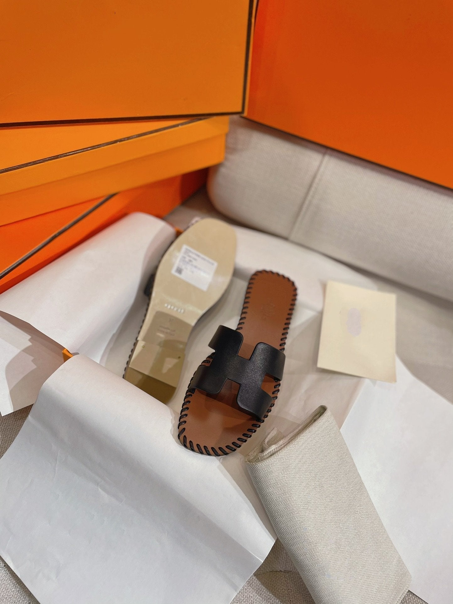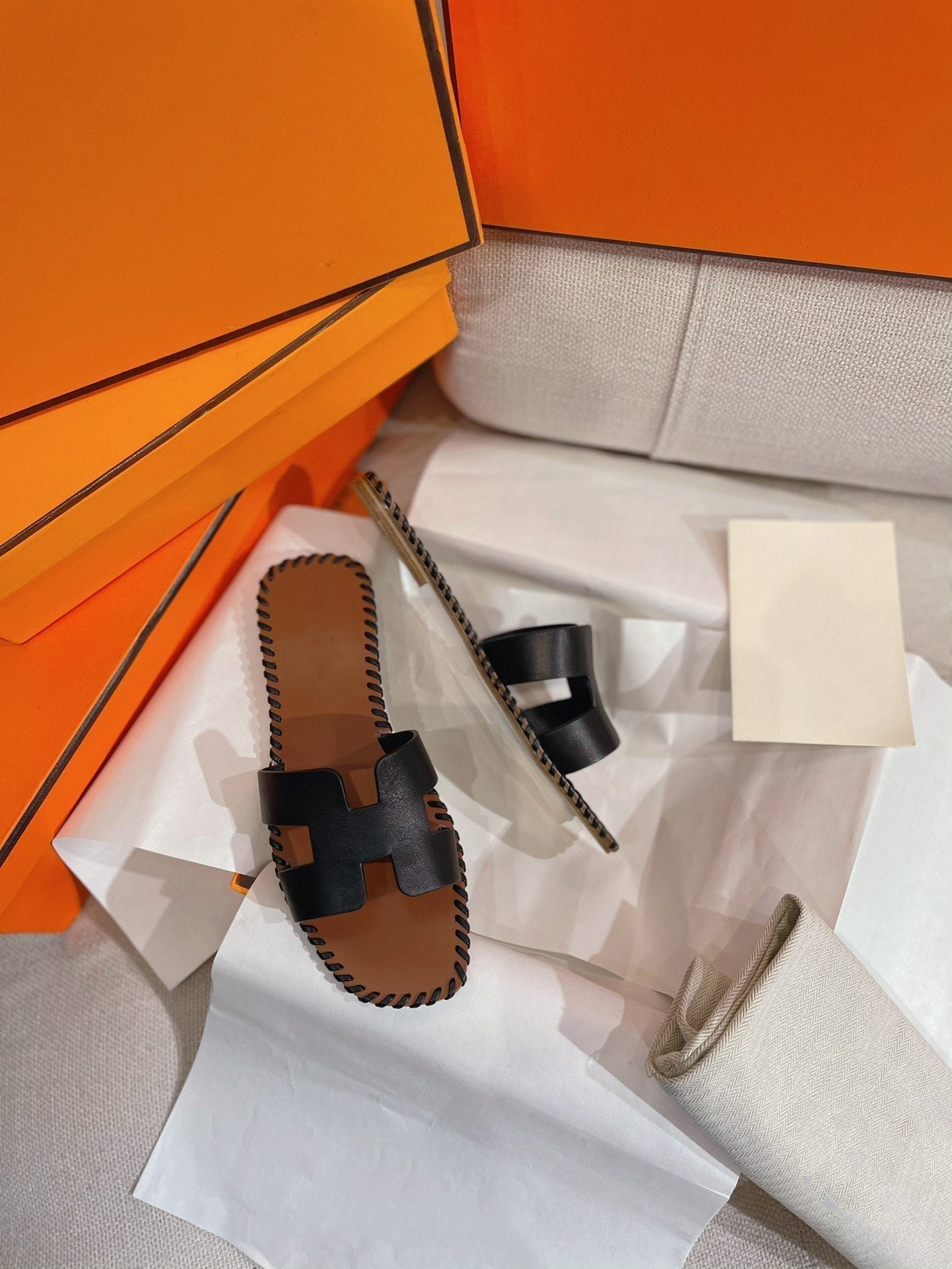 Material: Sandal in calfskin with iconic "H" cut-out.