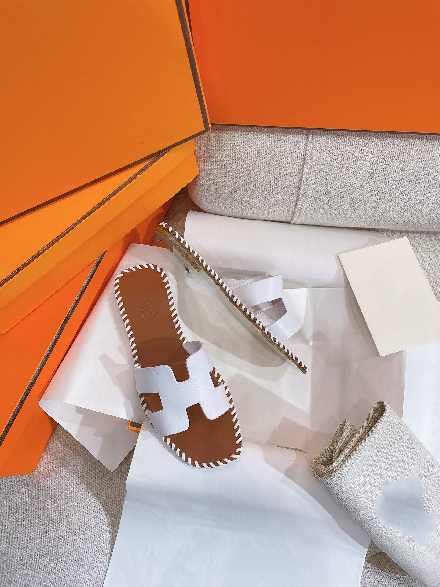 Material: Sandal in calfskin with iconic "H" cut-out.