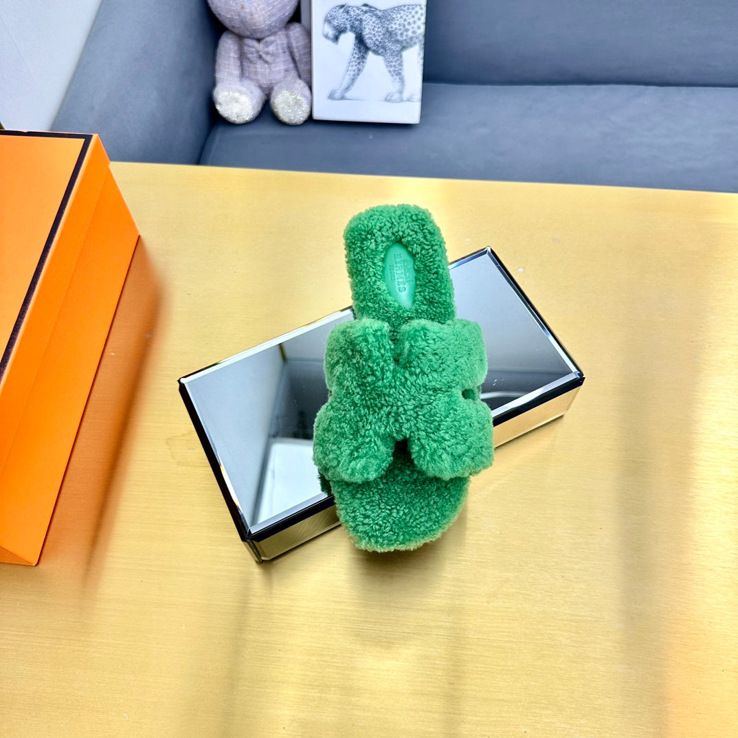 0RAN SHEARLING SANDALS EMERALD GREEN
