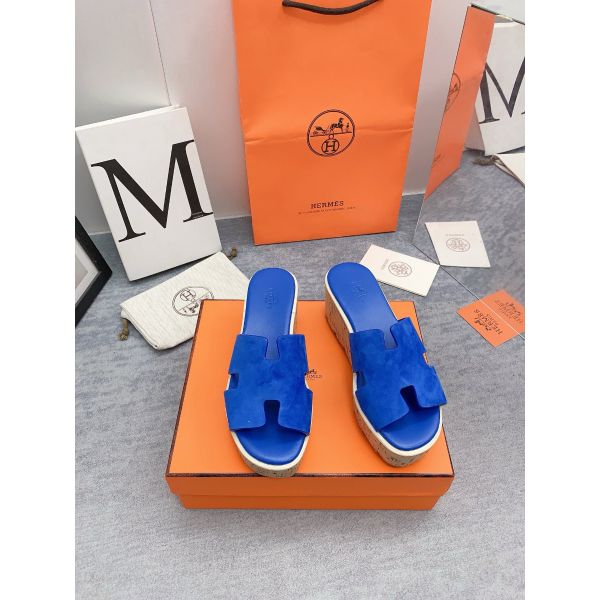 HERM Eze 30 Cork Platform Sandals in Blue Suede Leather