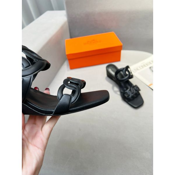 HERM Figari 55mm Wedge Sandals In Black Nappa Leather