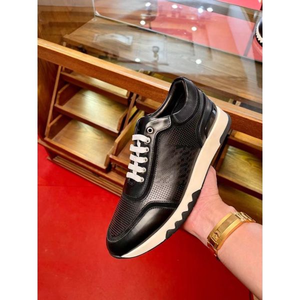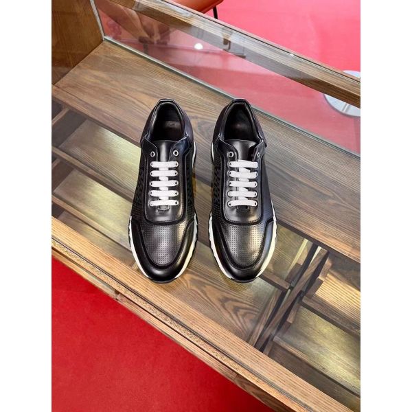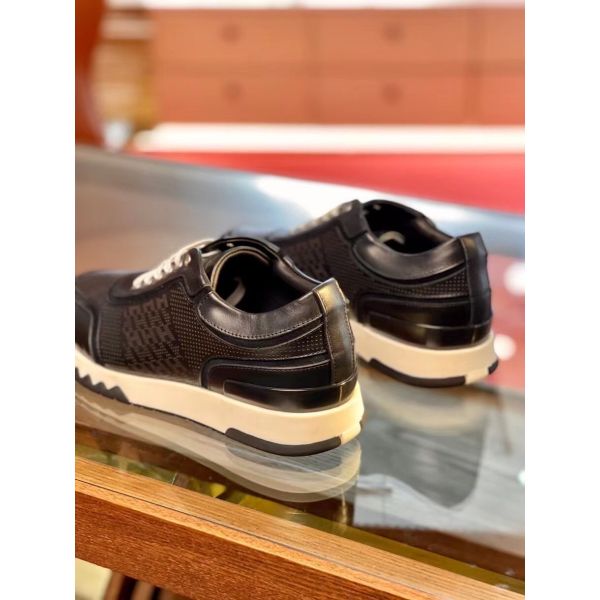 HERM Men's C-Addict Sneakers In Black Perforated calfskin