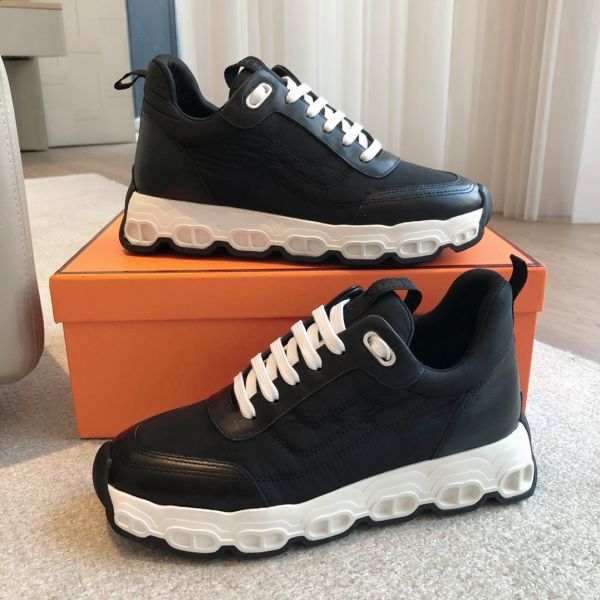 HERM Men's Impulse Sneakers in Black Fabric and Leather