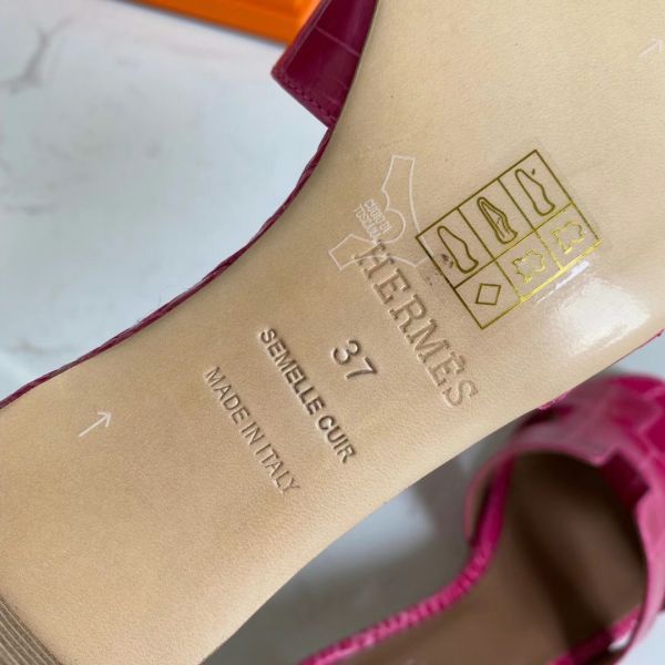 HERM Oasis Sandals In Rose Red Shiny Niloticus Crocodile