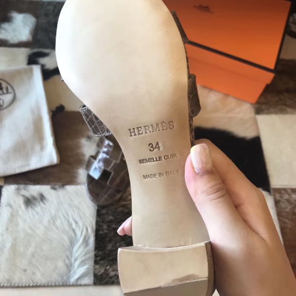 HERM Oasis Sandals In Taupe Shiny Niloticus Crocodile