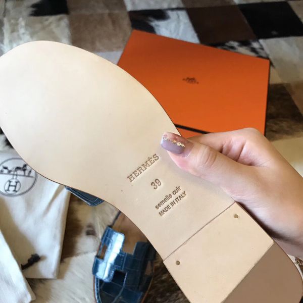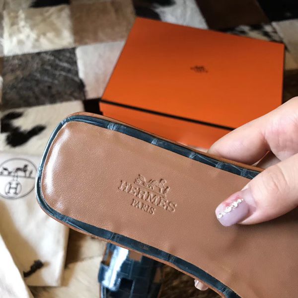 HERM Oran Sandals In Blue Shiny Niloticus Crocodile
