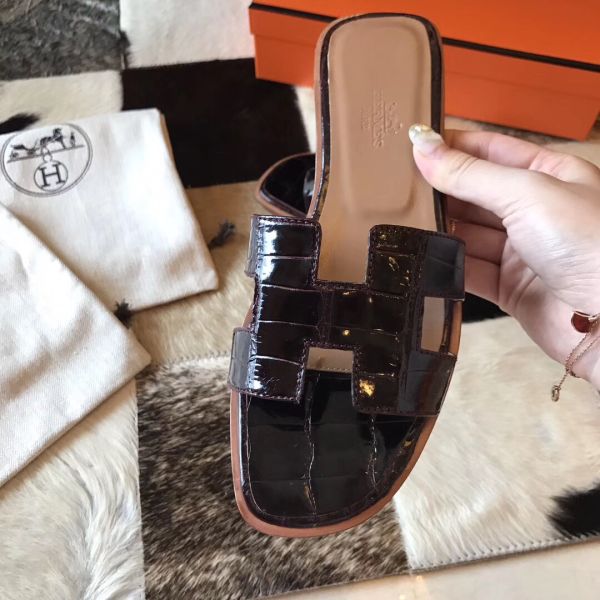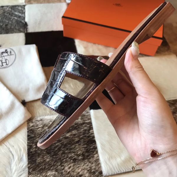 HERM Oran Sandals In Burgundy Shiny Niloticus Crocodile