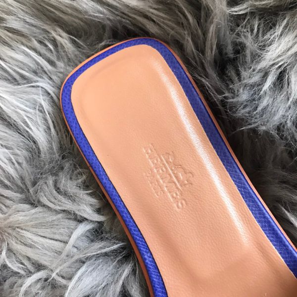 HERM Oran Slide Sandals In Blue Epsom Perforated Calfskin