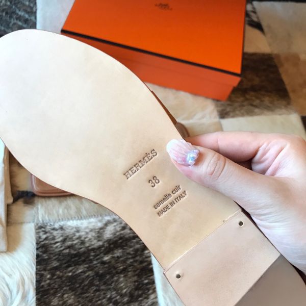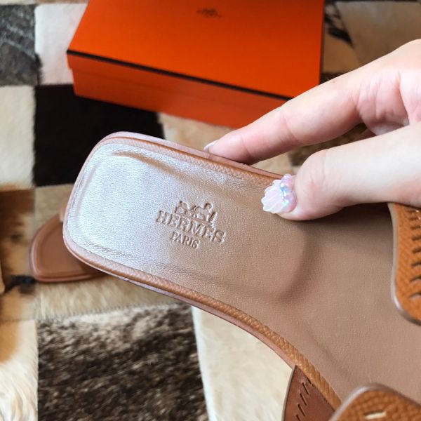 HERM Oran Slide Sandals In Gold Epsom Perforated Calfskin