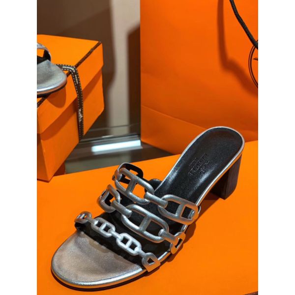 HERM Tandem Sandals In Silver Metallic Calfskin