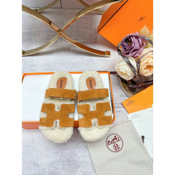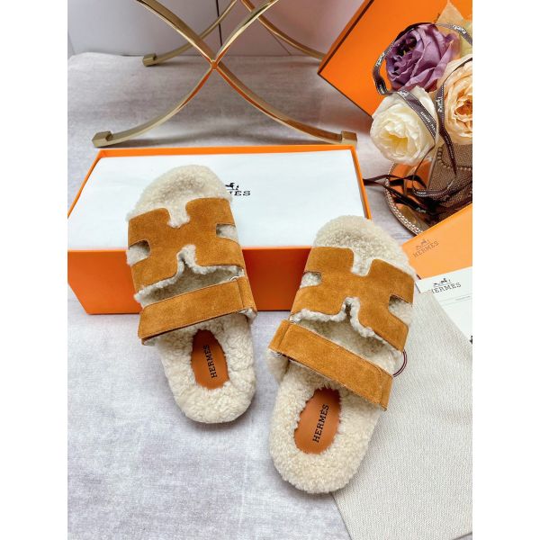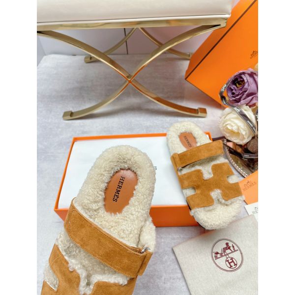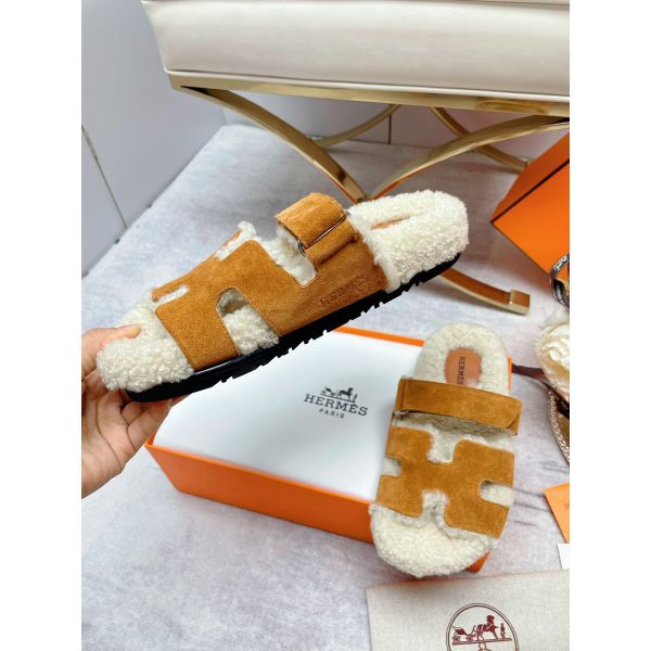 HERM Women's Chypre Sandals in Tan Suede with Shearling