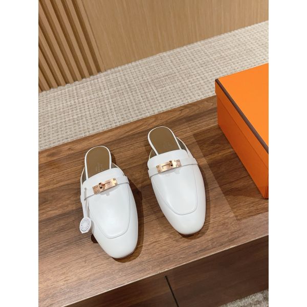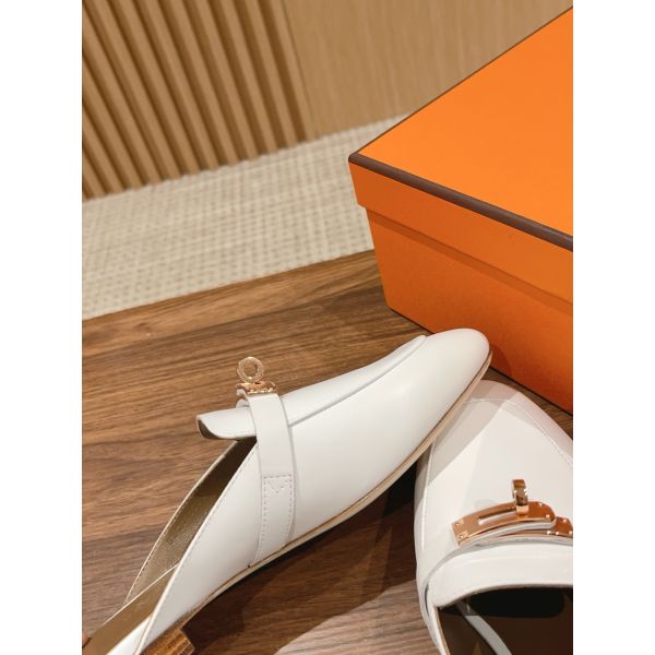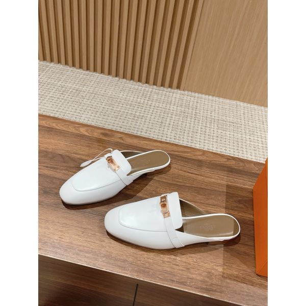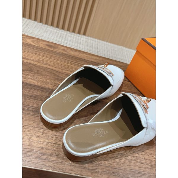 HERM Women's Oz Mules in White Calfskin