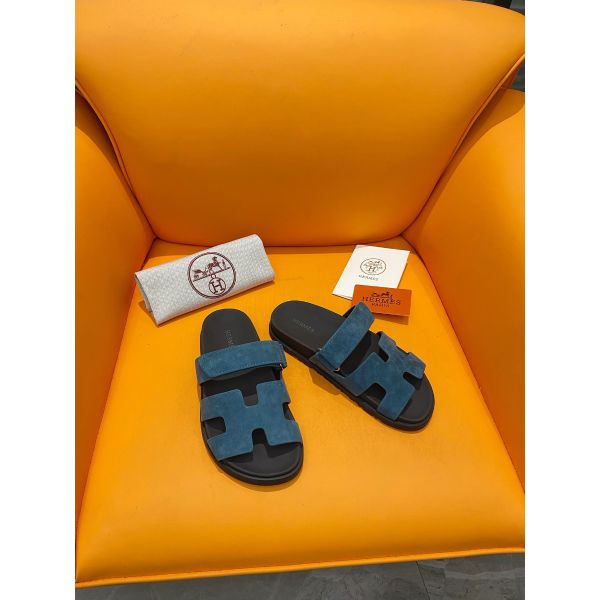 HERM Men's Chypre Sandals in Blue Suede Calfskin