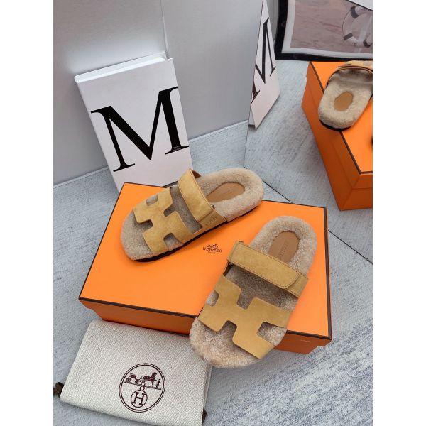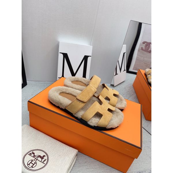HERM Women's Chypre Sandals in Beige Suede with Shearling