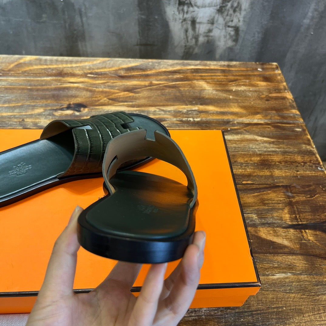 HERM Oasis Sandals In Blue Shiny Niloticus Crocodile