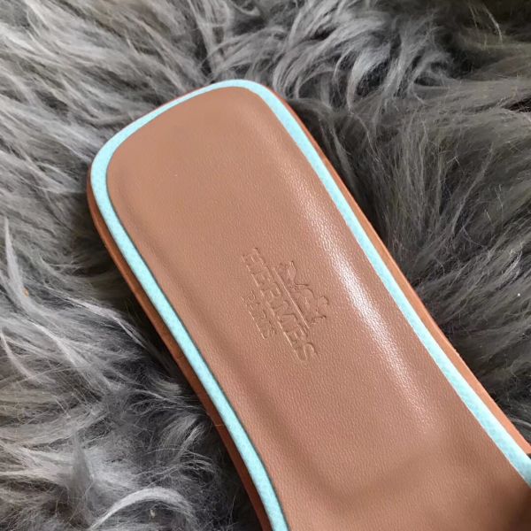 HERM Oran Perforated Sandals In Blue Atoll Epsom Leather
