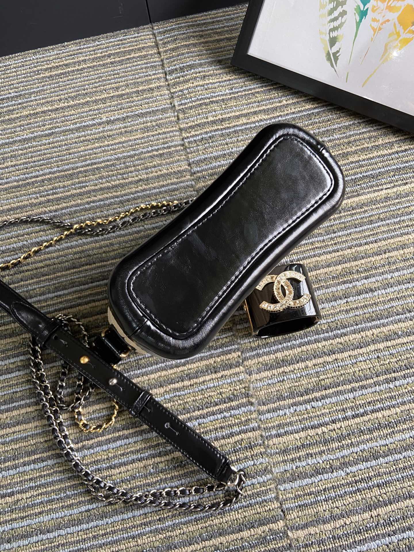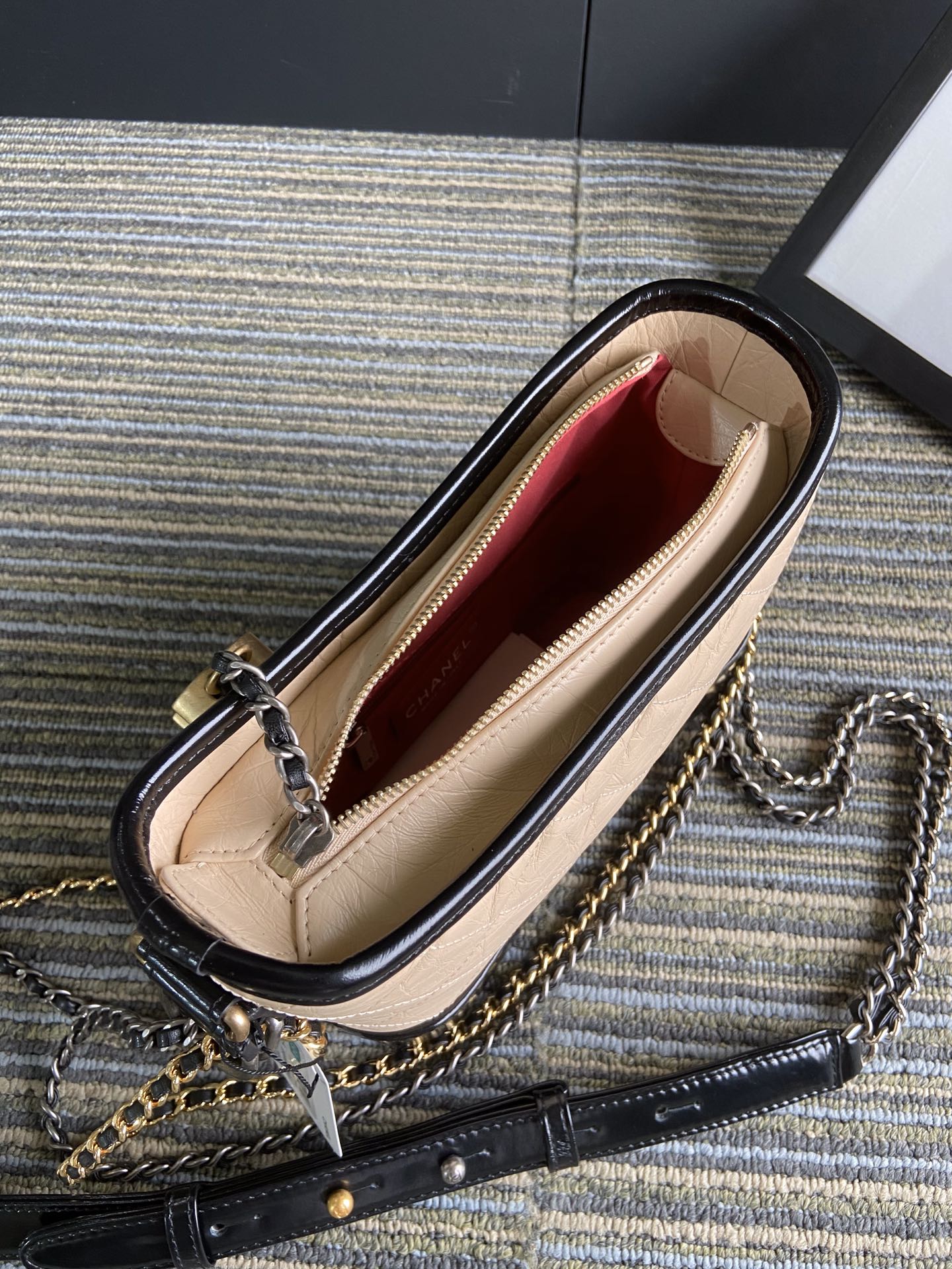 CC MEDIUM 20 HOBO BAG IN BEIGE CREAM MIX BLACK CALFSKIN WITH STRAP