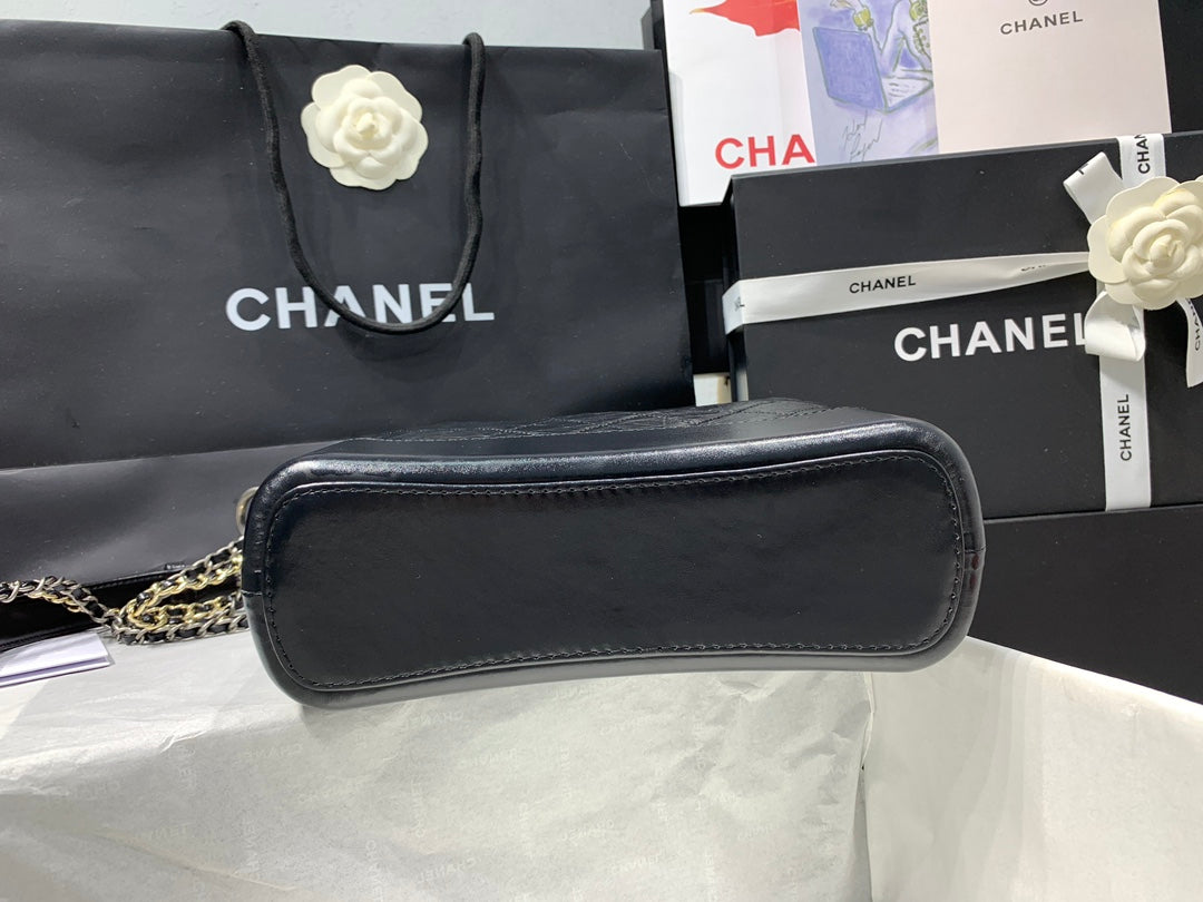 HOBO BAG 25 WITH STRAP IN BLACK CALFSKIN GOLD AND SILVER HARDWARE