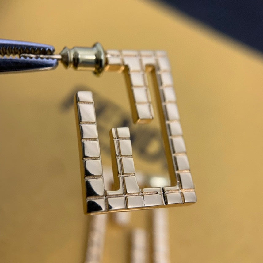 FF BAGUETTE MOTIF SHAPED GOLD EARRINGS