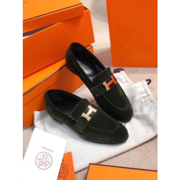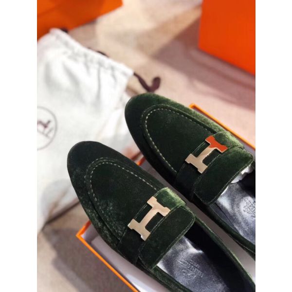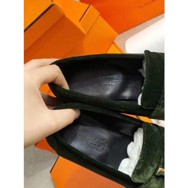 HERM Paris Loafers In Dark Green Velvet