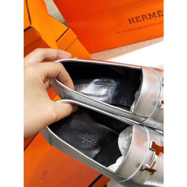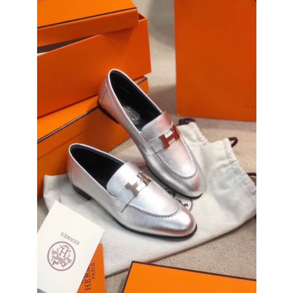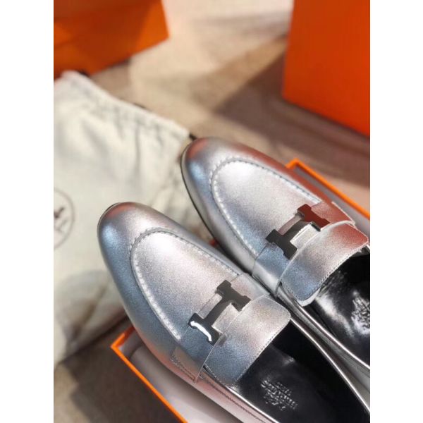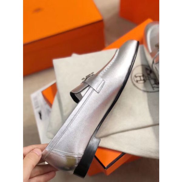 HERM Paris Loafers In Silver Metallic Goatskin