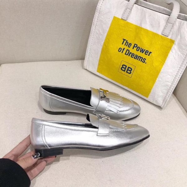 HERM Royal Loafers In Silver Metallic Lambskin