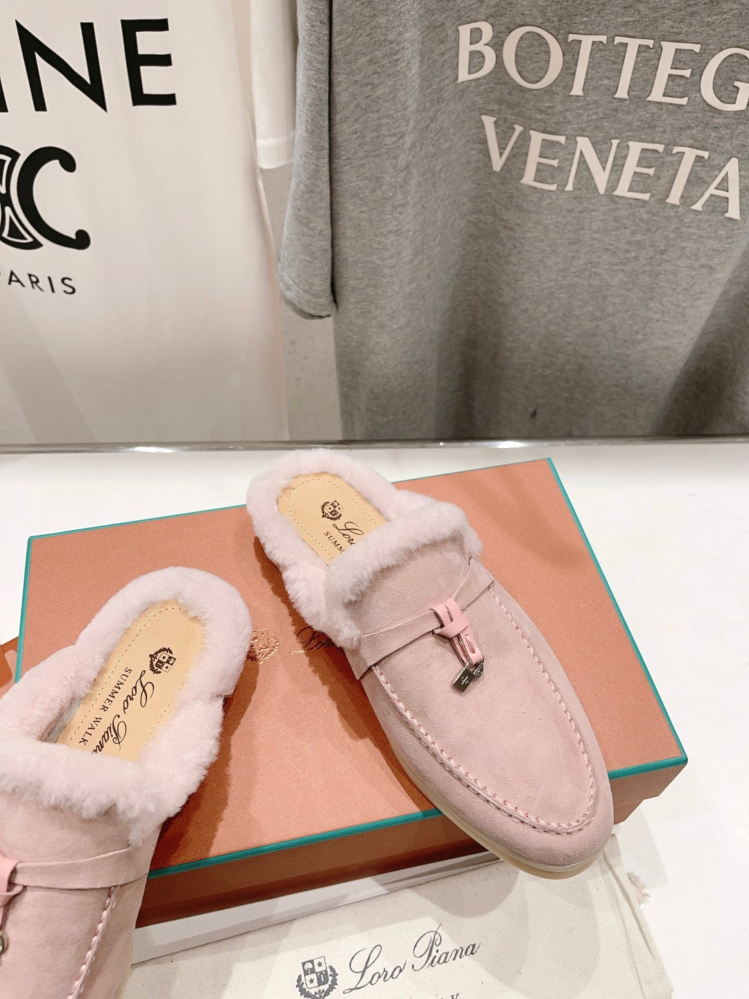 LP CHARMS WALK BABOUCHE LOAFERS LIGHT PINK FLEECE