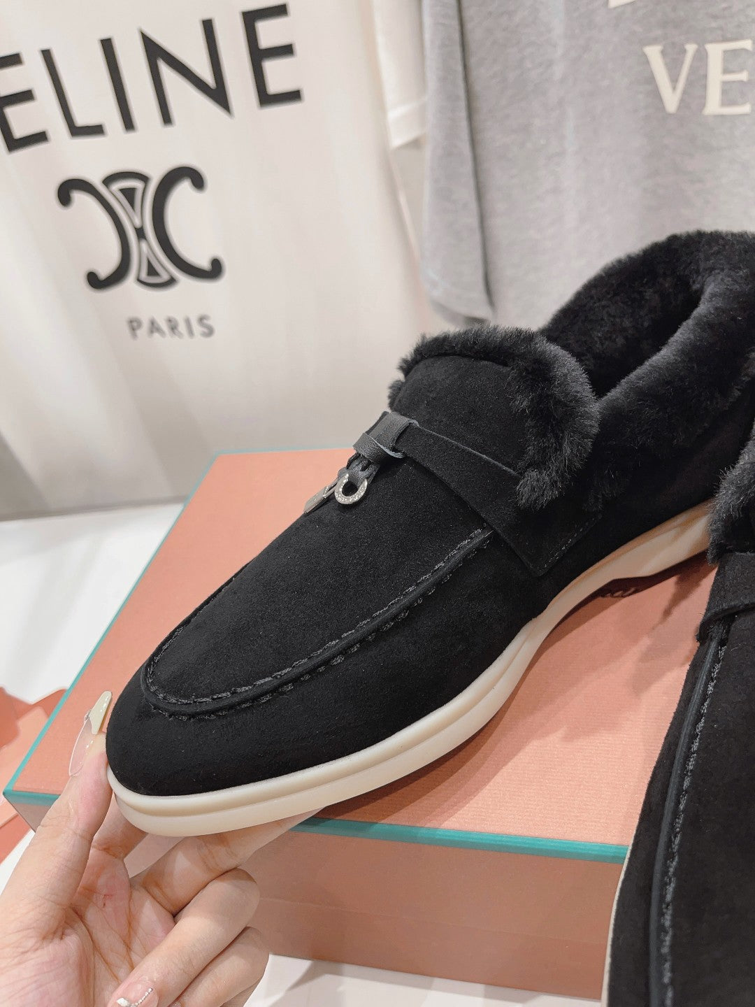- Material: Suede And Fleece