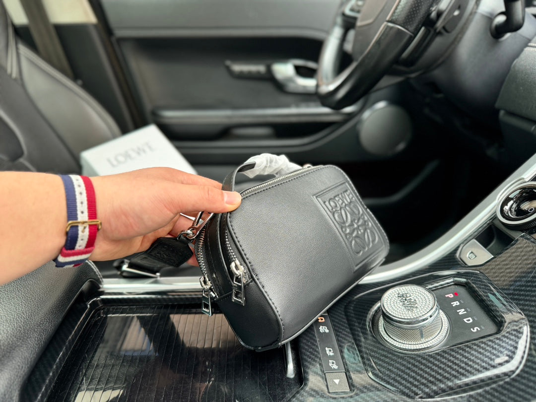 LOE MINI 18 CAMERA CROSS BODY BAG IN BLACK CALFSKIN