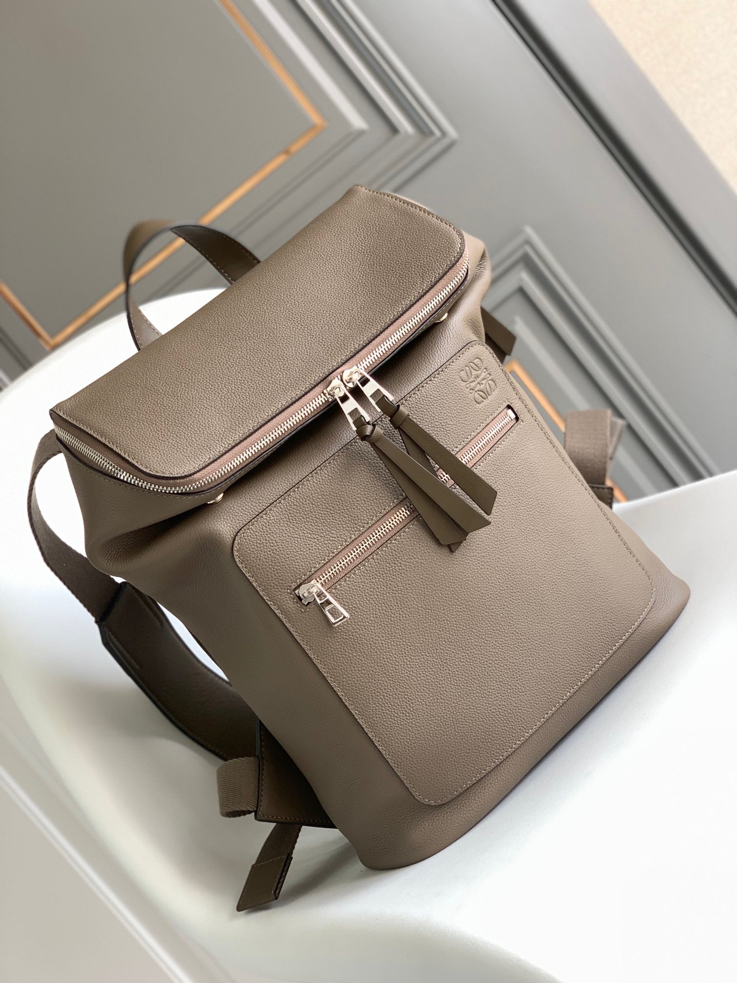 LOE GOYA BACKPACK 40 IN BLACK MIX BEIGE GRAINED CALFSKIN