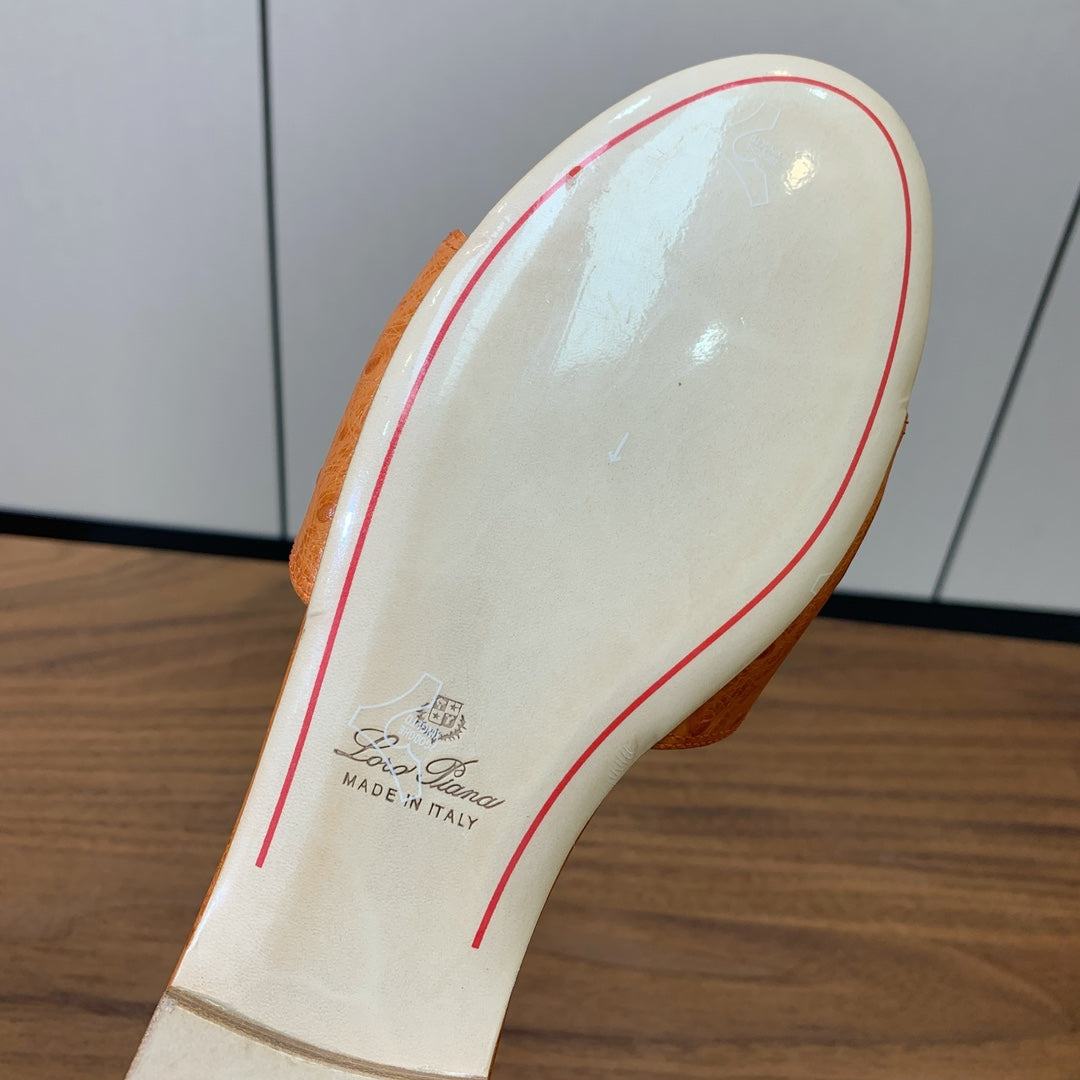 FLAT SLIPPERS IN ORANGE LAMBSKIN OSTRICH SKIN