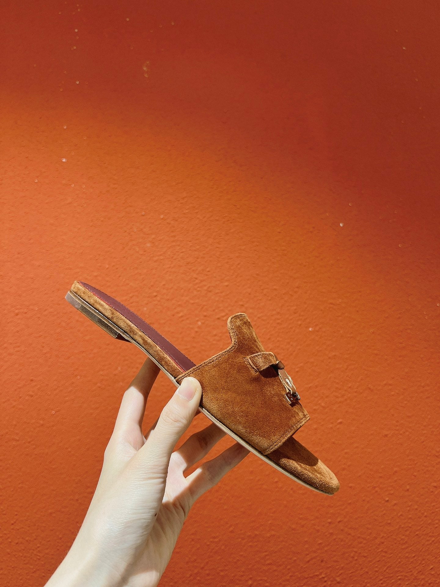 Summer Charms Sandals in Red-Orange Suede Maroon Lambskin