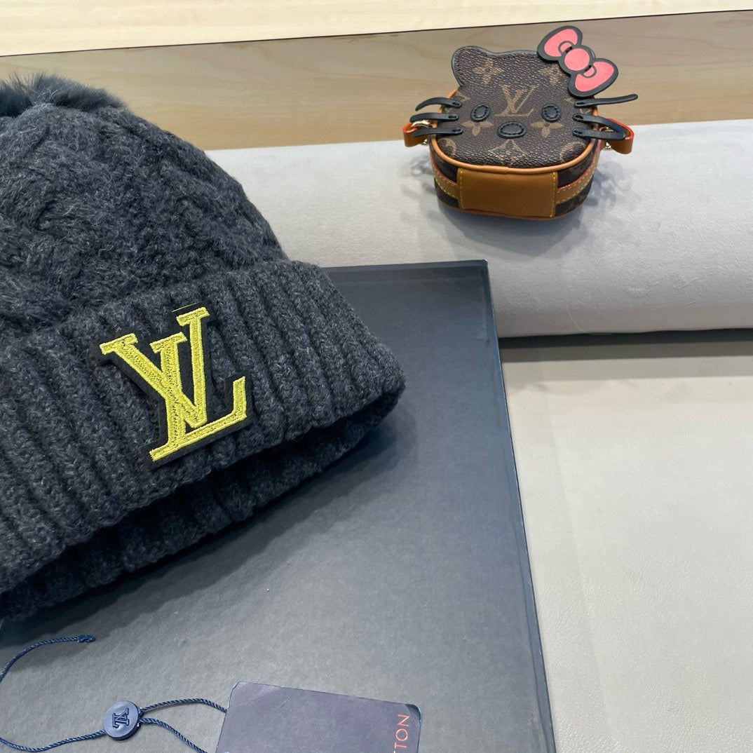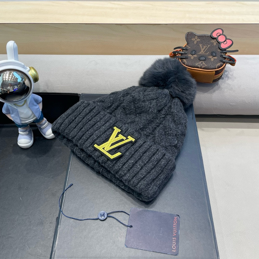 KNITTED BEANIE HAT IN BLACK WOOL AND LAMB FUR 430044