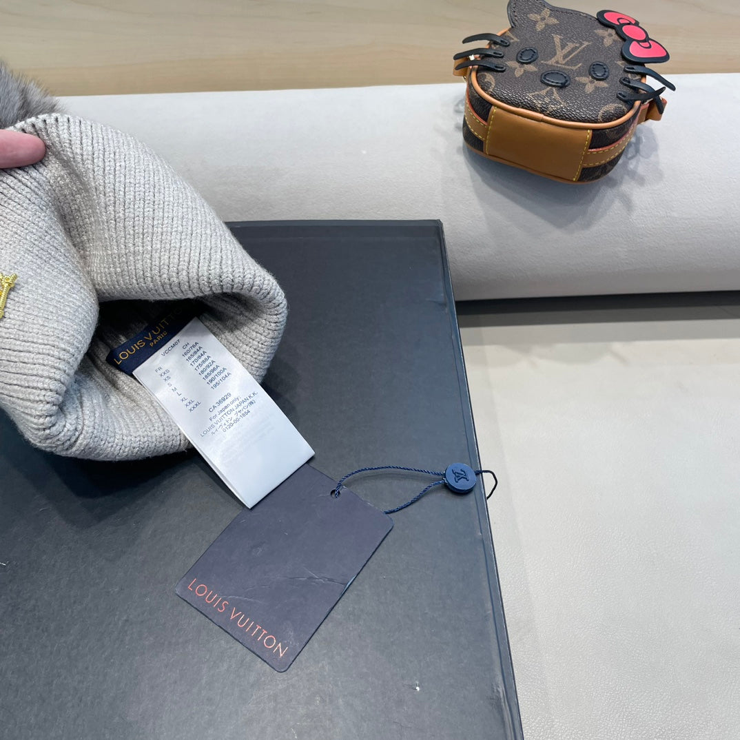 KNITTED BEANIE HAT IN LIGHT GRAY WOOL AND FOX FUR 409791