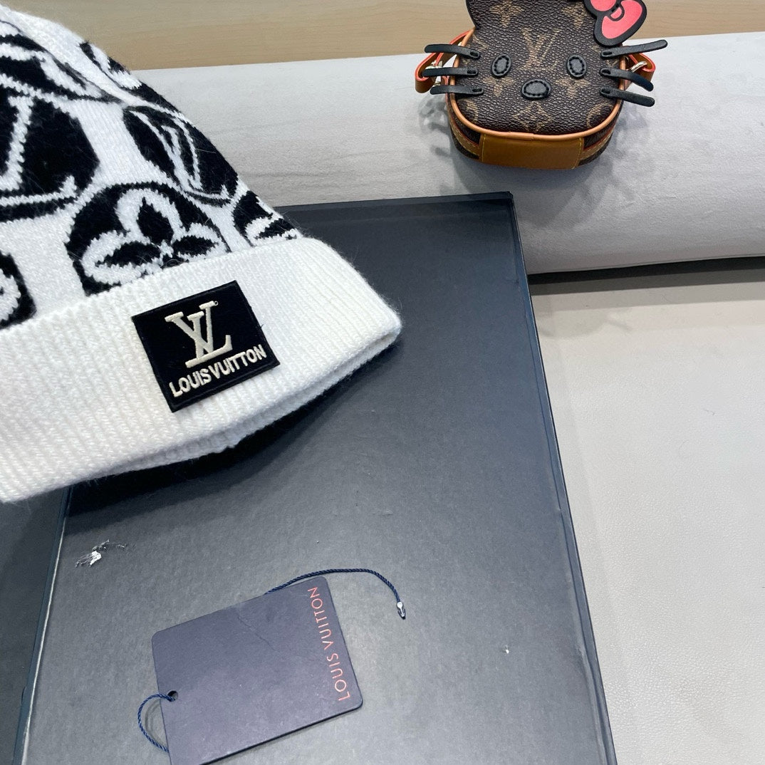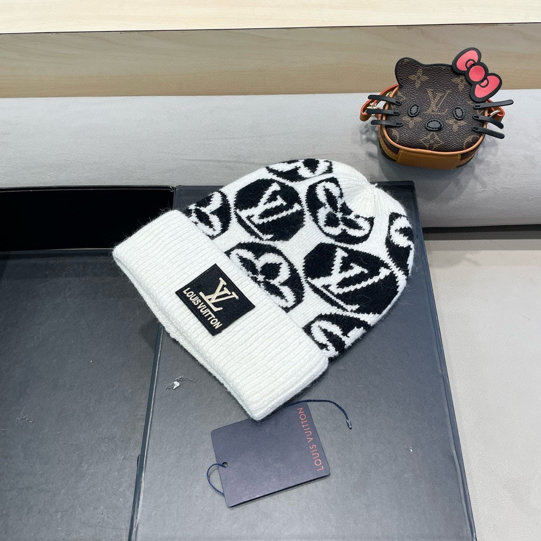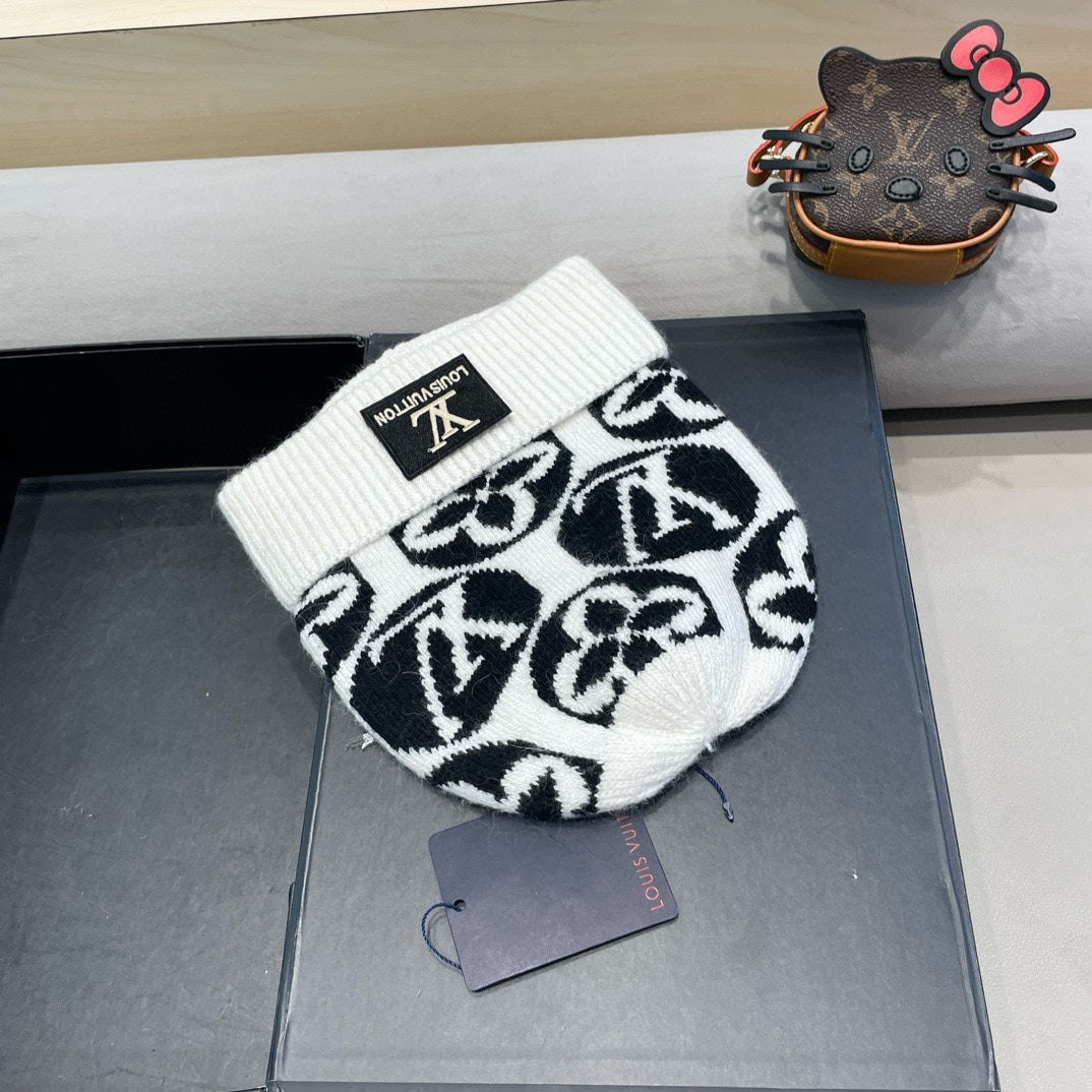 KNITTED BEANIE HAT IN WHITE MIX BLACK WOOL AND RABBIT FUR 426243