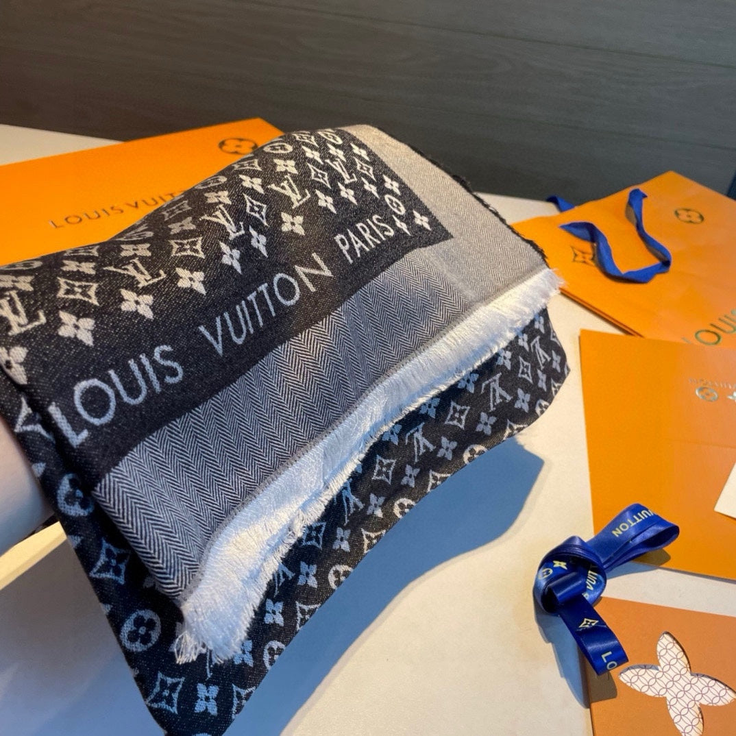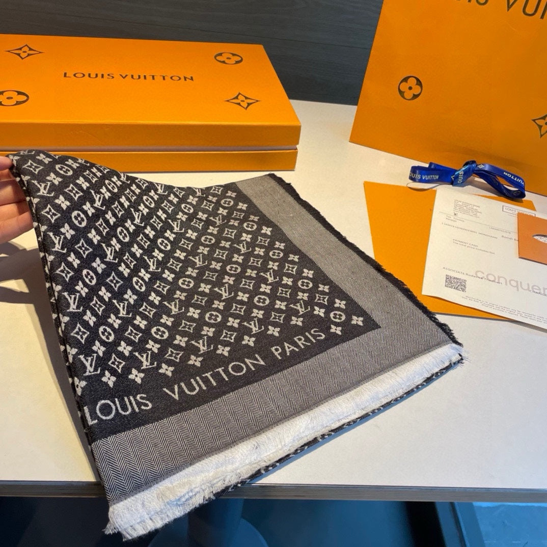 MONOGRAM SHINE SCARF 120 CM IN BLACK WOOL AND MULBERRY SILK 398194