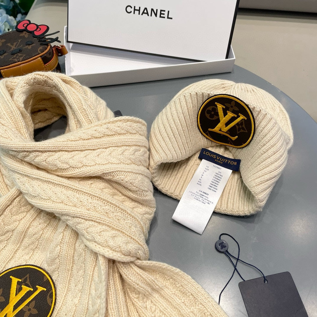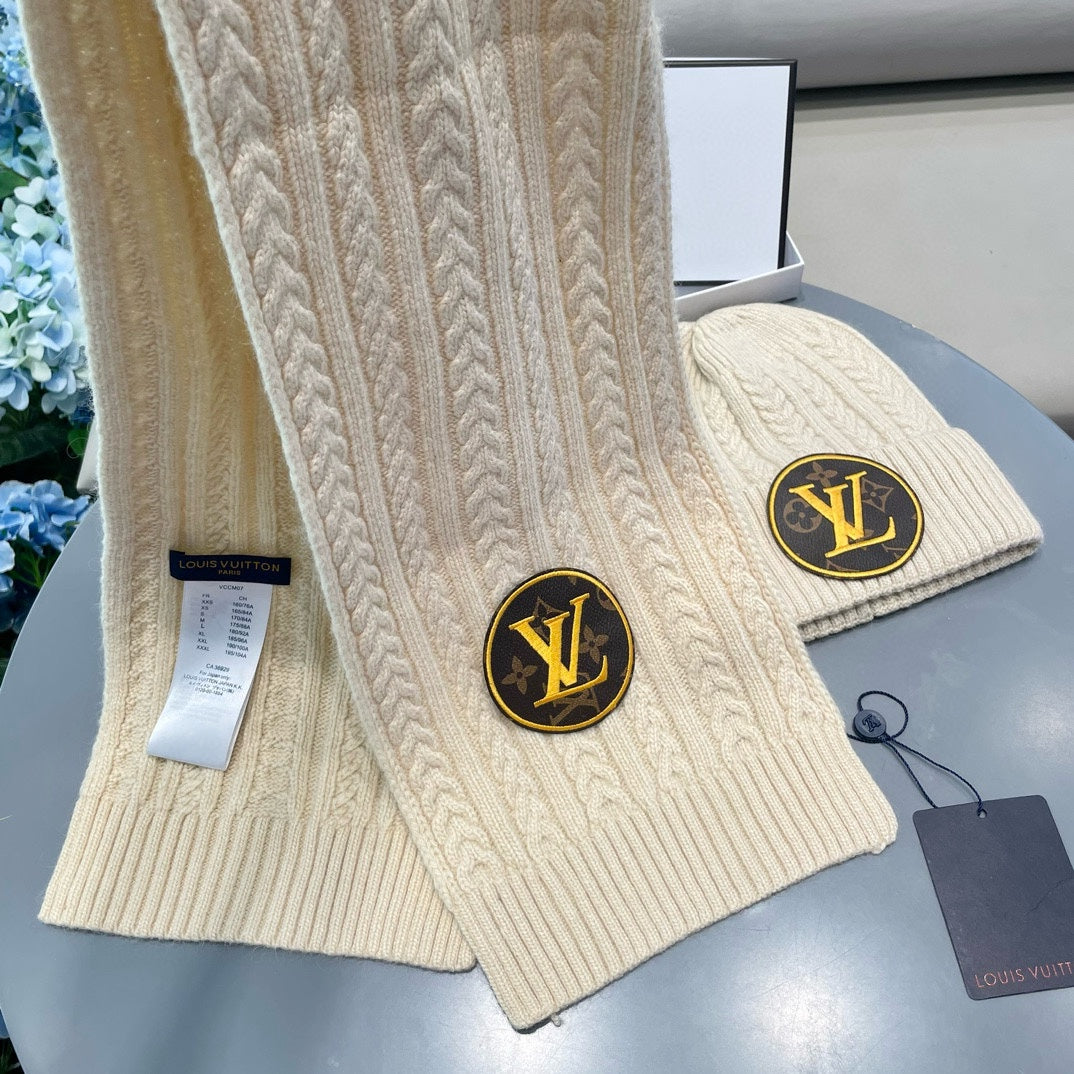 SET SCARF AND HAT IN CREAM BEIGE WOOL 434609