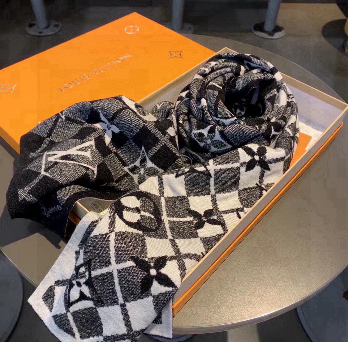 SCARF 180 CM IN BLACK CLASSIC MONOGRAM CASHMERE 396441