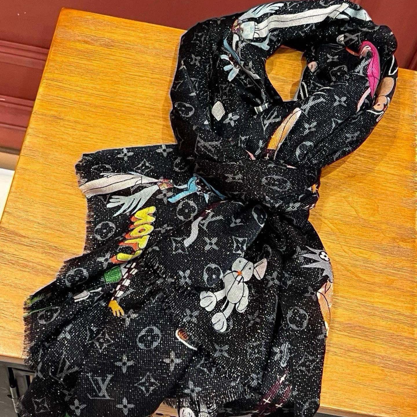 MONOGRAM SCARF 210 CM IN BLACK MIX WHITE CASHMERE 398283
