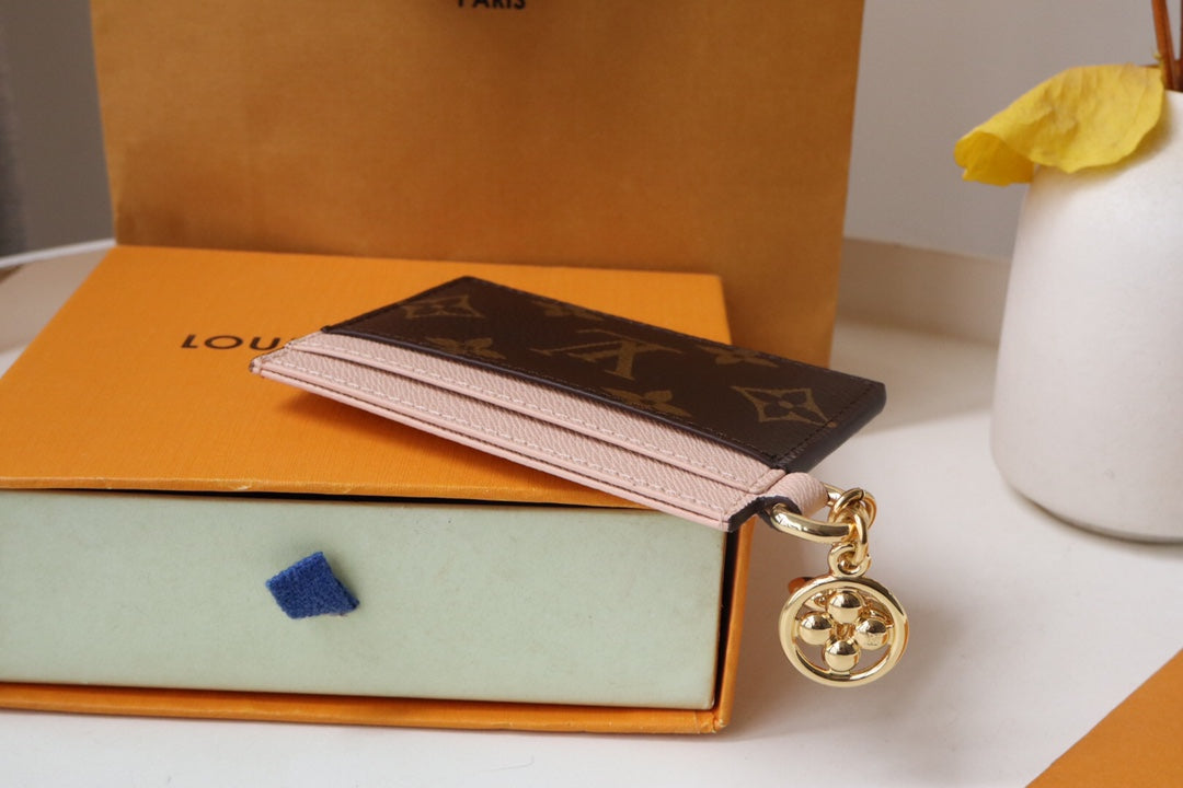 - CHARM CARD HOLDER BROWN PINK MONOGRAM CANVAS