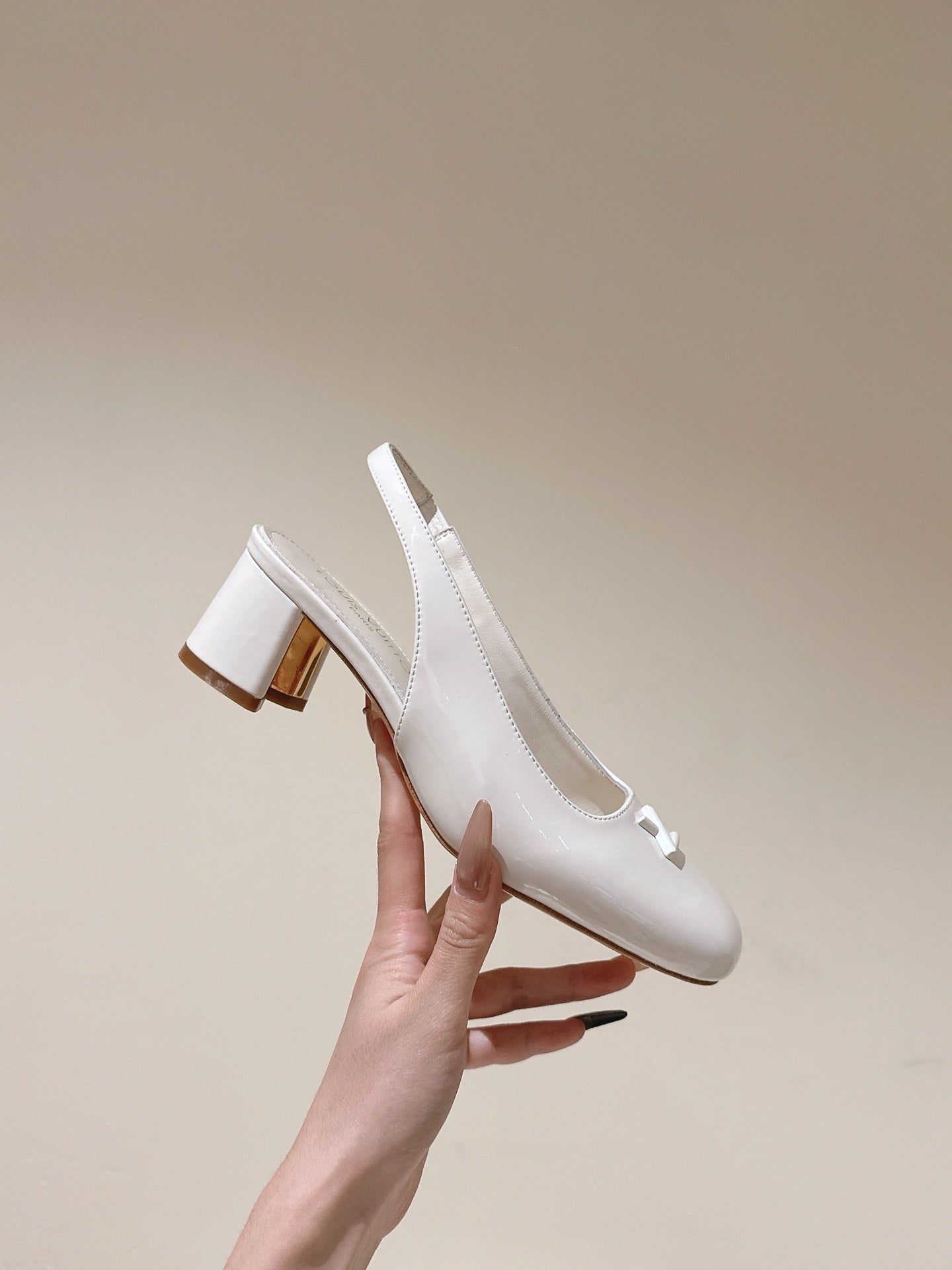 SWING SLINGBACK PUMP 55 MM IN WHITE PATENT CALFSKIN