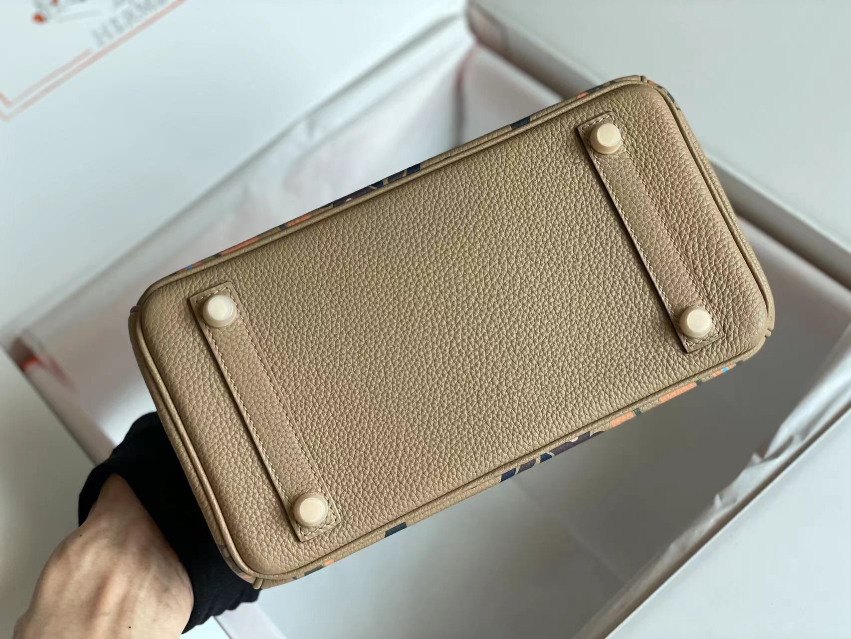 BIRKIN 25 BAG IN PEANUT BROWN CALFSKIN WITH COLORFUL STICKER