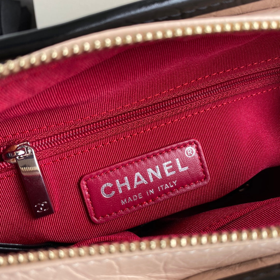 • CC ABRIELLE MINI 20 HOBO BAG IN ALMOND BEIGE MIX BLACK CALFSKIN