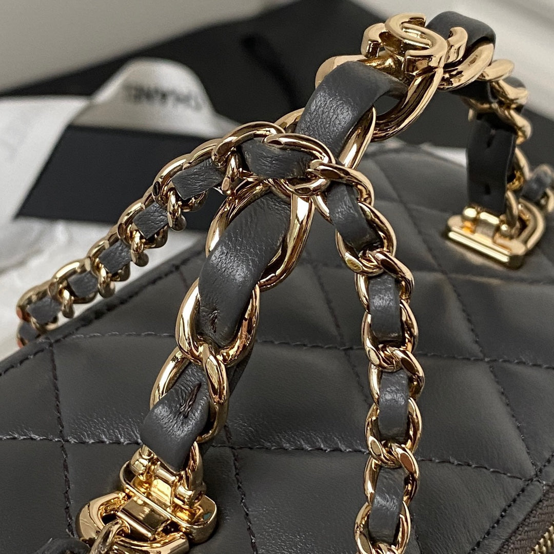 CC MINI 17 CLUTCH WITH STRAP IN DARK GREY CALFSKIN