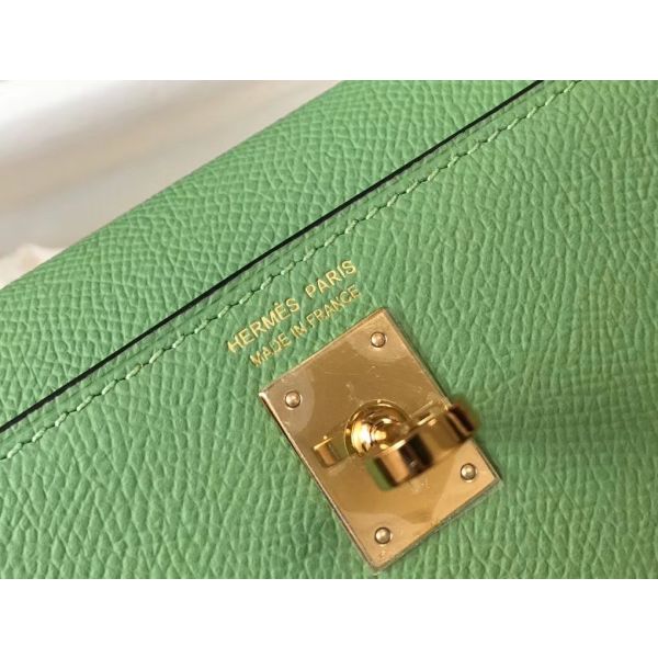 HERM Kelly Mini II Bag In Vert Criquet Epsom Leather GHW