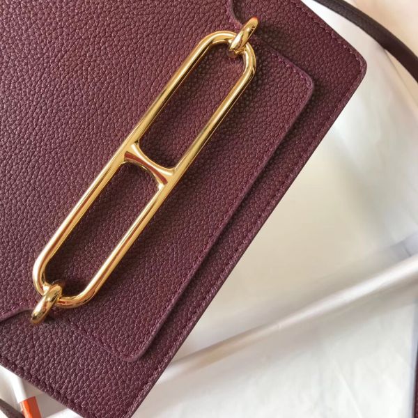 HERM Mini Sac Roulis 18cm Bag In Burgundy Evercolor Calfskin